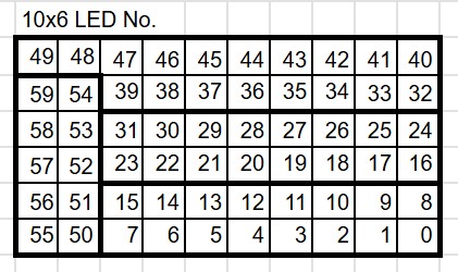 今回は40個のRGB LED表示から60個のRGB LED表示にしてデバック情報の最適化を行ってみました。まずはこの10x6 RGBマトリクスを1個使ったバージョンでしばらく使ってみて、拡張したくなったら2個目をつけてみようかと思います。