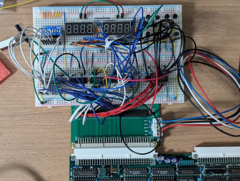 手元にある68000 VMEボードはターミナルを接続してモニタやBASICが動くようにしています。しかし、それ以外に何も出力装置が無いため、デバック用のLEDがあるといいなと思っていました。 そこで、VMEバスに自作のI/Oを接続している事例が無いかと探したところ次の記事を見つけました。